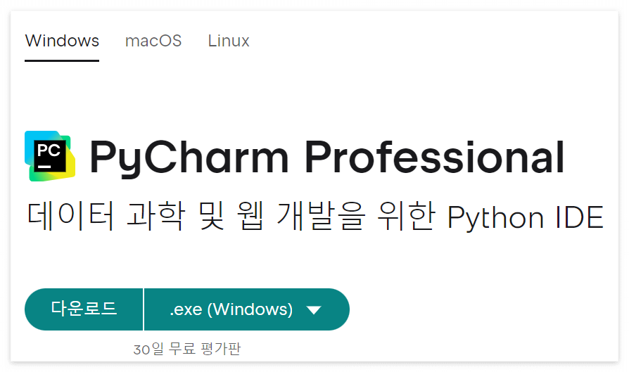 https://www.jetbrains.com/ko-kr/pycharm/download/?section=windows