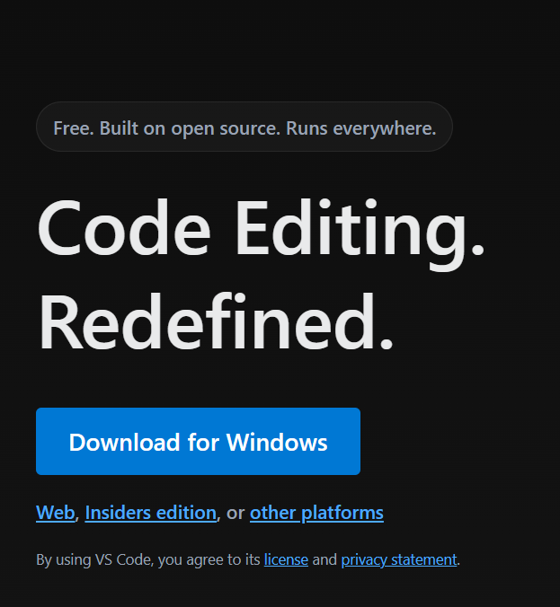 Visual Studio Code is a code editor redefined and optimized for building and debugging modern web and cloud applications. Visual Studio Code is free and available on your favorite platform - Linux, macOS, and Windows.